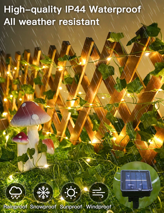SUDDUS Solar Vine Fairy Lights – 33ft 100 LED Waterproof Outdoor Vine Lights with 8 Modes for Garden, Patio, Fence, Balcony