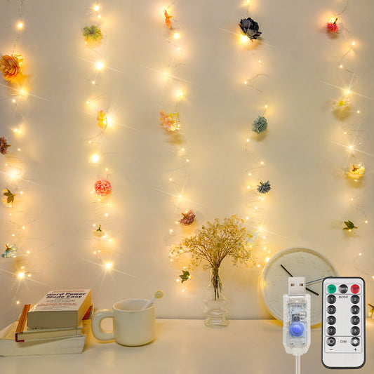 SUDDUS Vine Fairy Curtain Lights – 200 LED 6.5x6.5ft Remote-Controlled Lights for Bedroom, Dorm, Wedding & Indoor Outdoor Decor