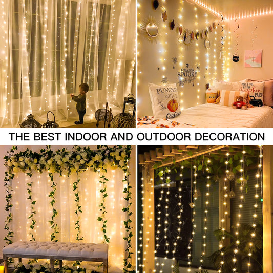 SUDDUS 200 LED USB Curtain Fairy Lights, 6.5×6.5 ft Plug-in String Lights with Remote, Timer & Dimming, Waterproof Indoor/Outdoor Window & Wall Decor