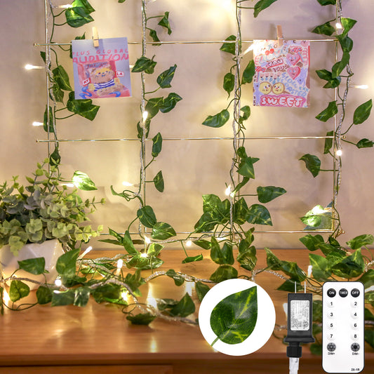 SUDDUS 33ft Plug-in Vine Fairy Lights with Remote, 100 LED Pothos & Ivy Leaf String Lights, Connectable Warm White Garland for Bedroom, Wall, Garden, Wedding & Party Decor